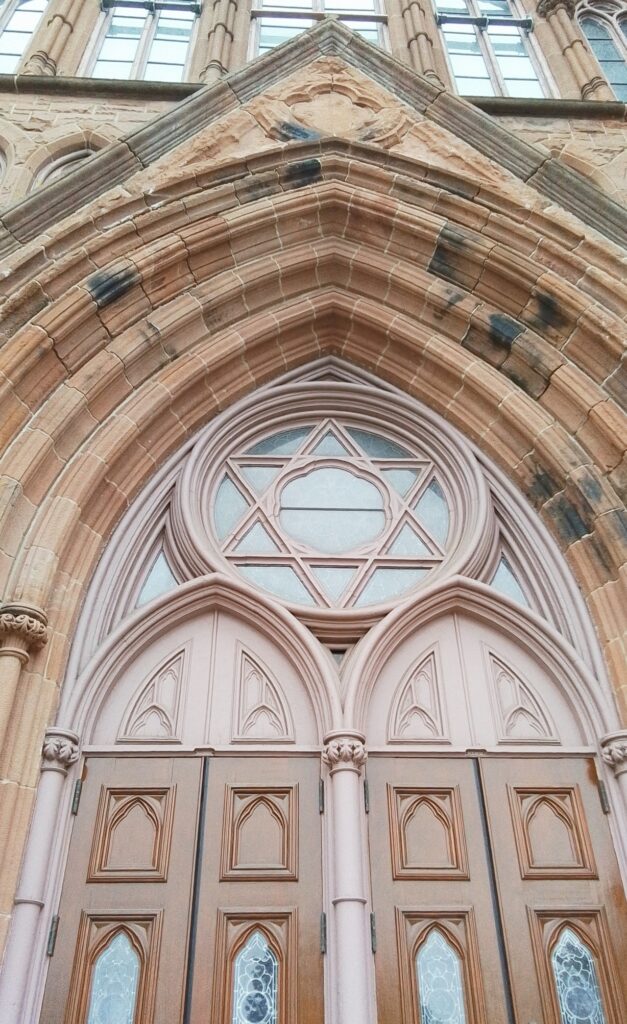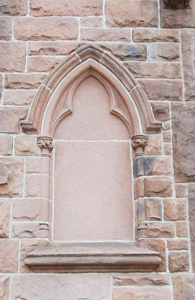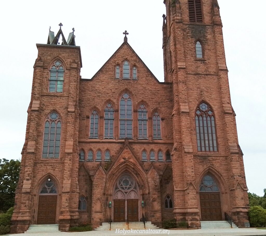 Sacred Heart Church that you see here now was started in October 21 1888 (cornerstone lain) and finished in 1896. The plans were made by James Murphy. It was consecrated on October 18 1896. The church is made of Longmeadow Sandstone. The church has 27 stained glass window that were made in Munich Germany. The metallic turrets were added in 1998. The organ is a Steere and Turner make from 1874. It was made for the Sacred Heart Chapel Church in that year. In 1896 they moved it from the chapel to the church. Steere and Turner is a Springfield based company.
