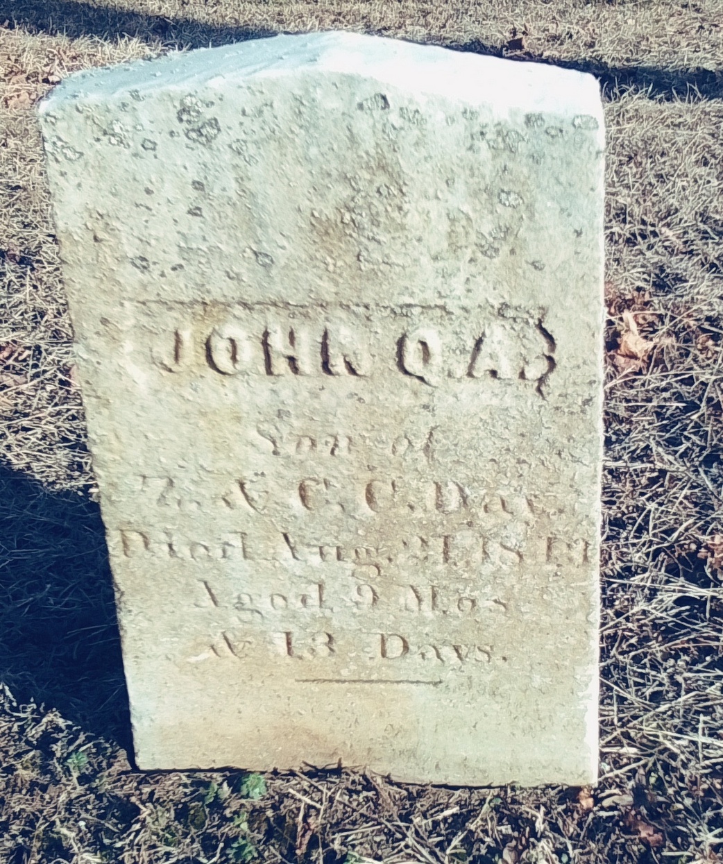 John Quincy Adams Day who died August 23 1843 as a child was the first burial within this cemetery.