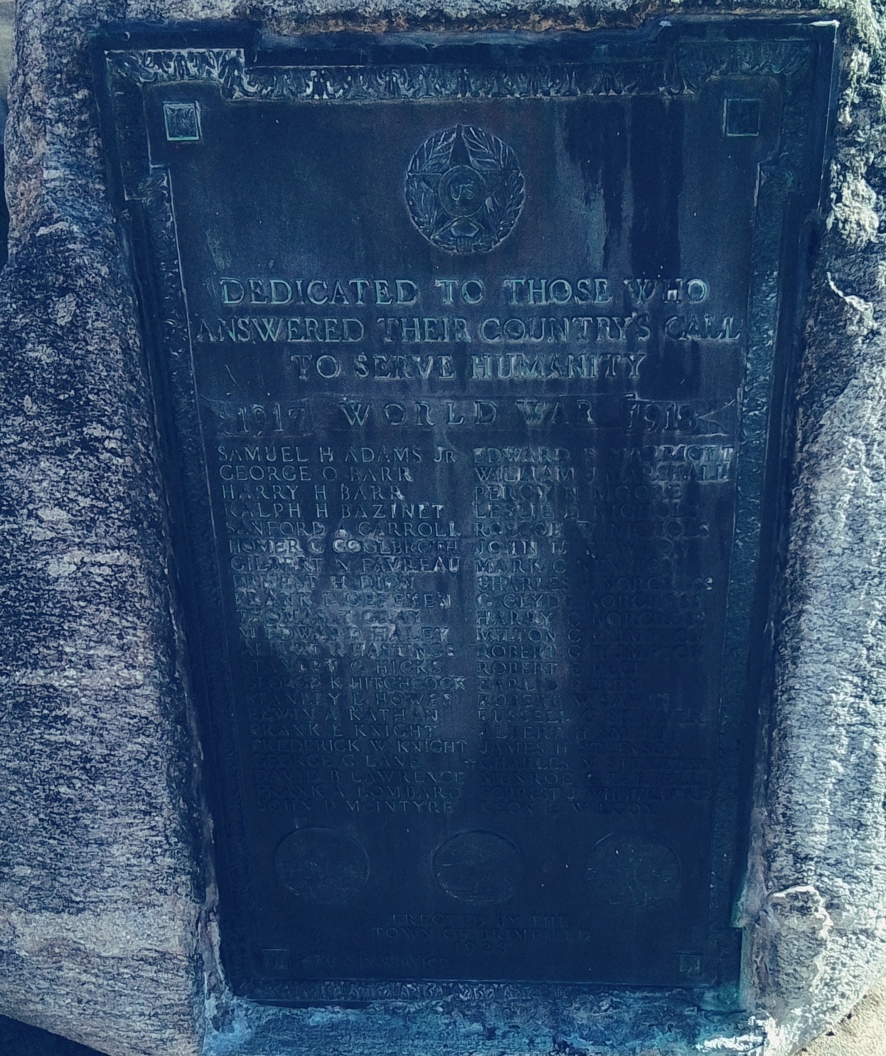 Brimfield Town Common Brimfield Town Common Converse Memorial War Honor Roll for Brimfield AROUND THE COMMON Brimfield First Congregational Church