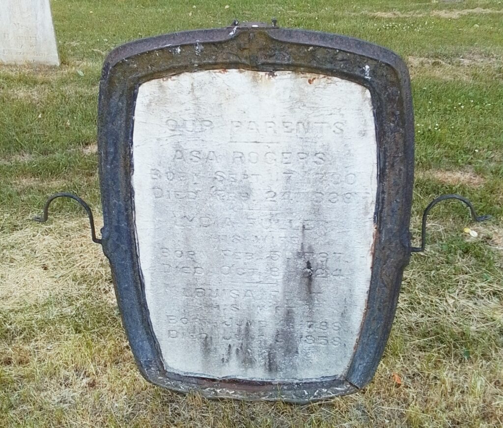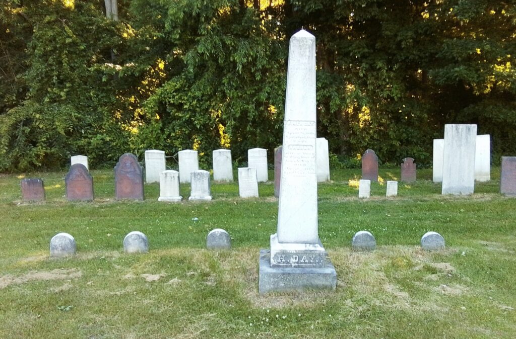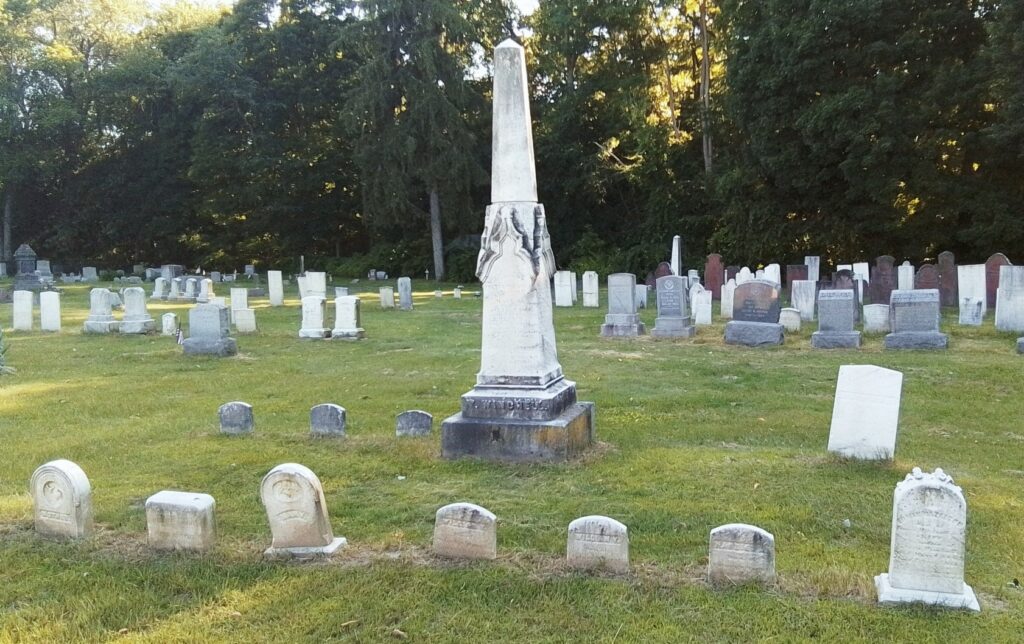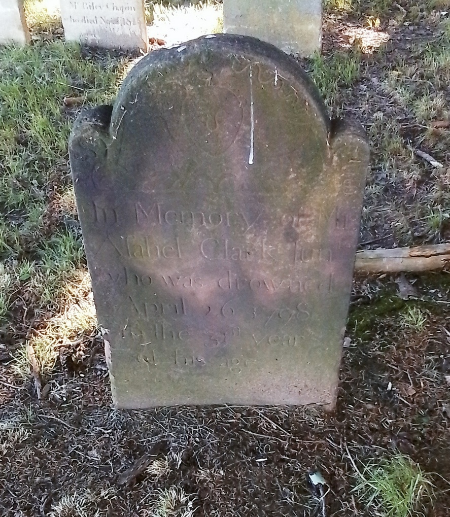 Mercy and Hannah Ashley have their 1775 gravestone together. Their stone is pointing correctly along an East to West alignment. No footstone. Their stone is the only one in the old section that was never moved. The baby section of the cemetery is in the back left of the old portion.