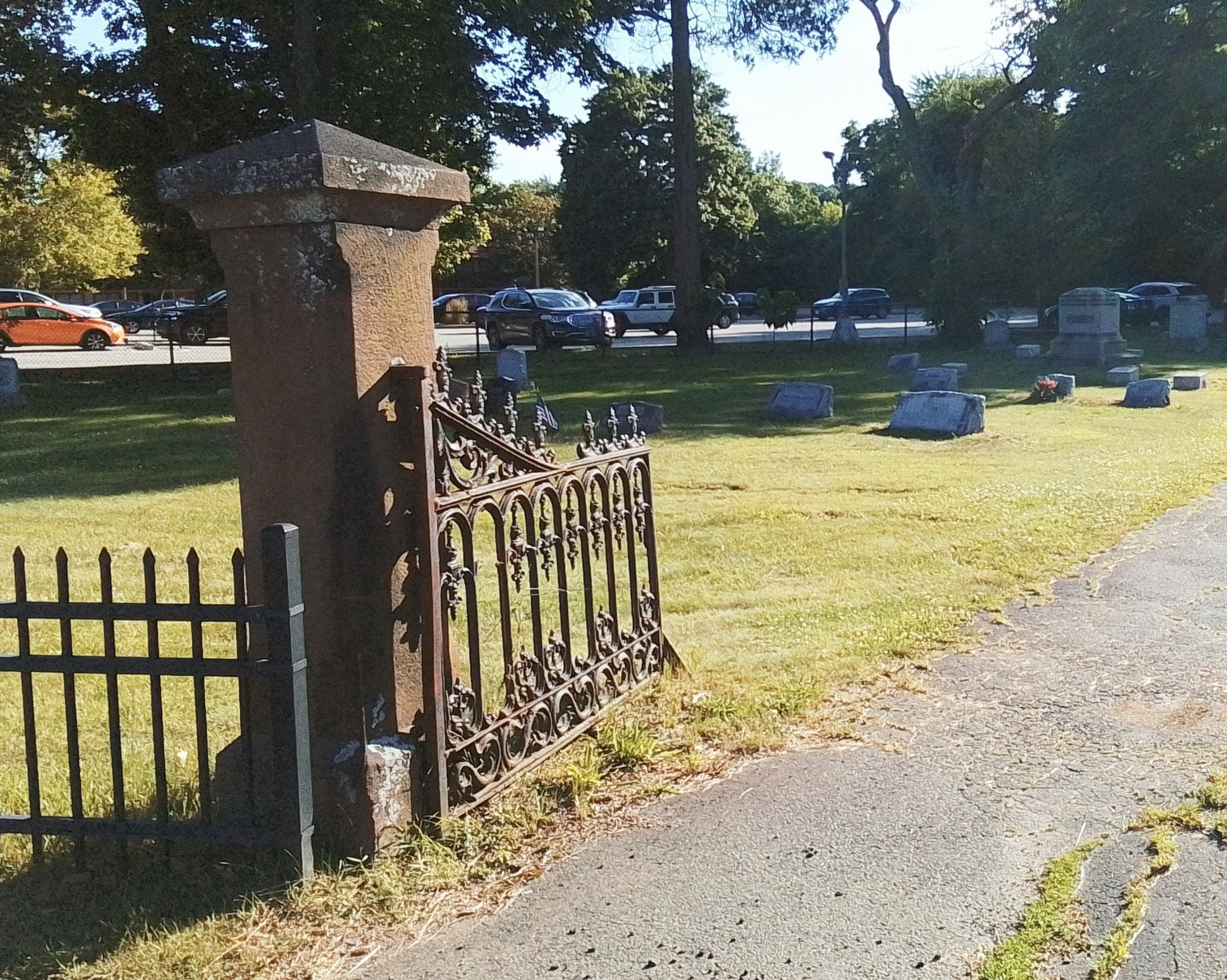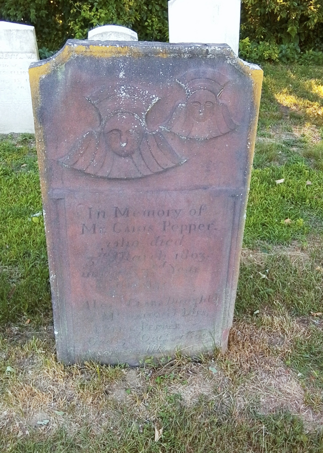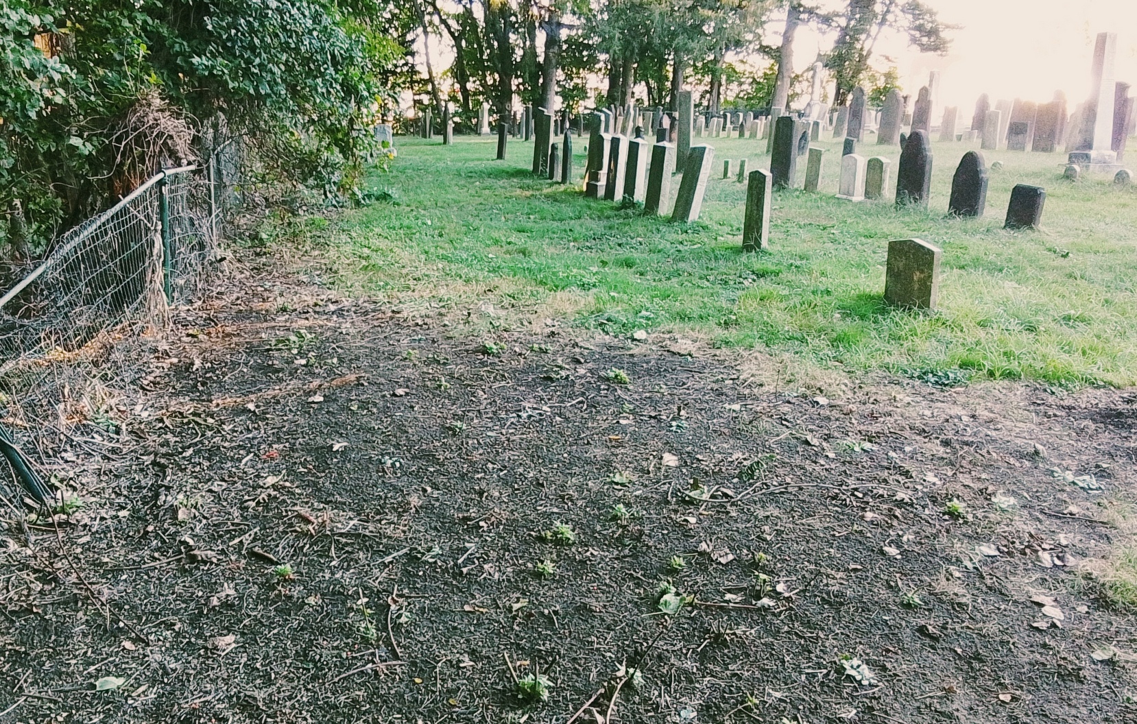 Mercy and Hannah Ashley have their 1775 gravestone together. Their stone is pointing correctly along an East to West alignment. No footstone. Their stone is the only one in the old section that was never moved. The baby section of the cemetery is in the back left of the old portion.