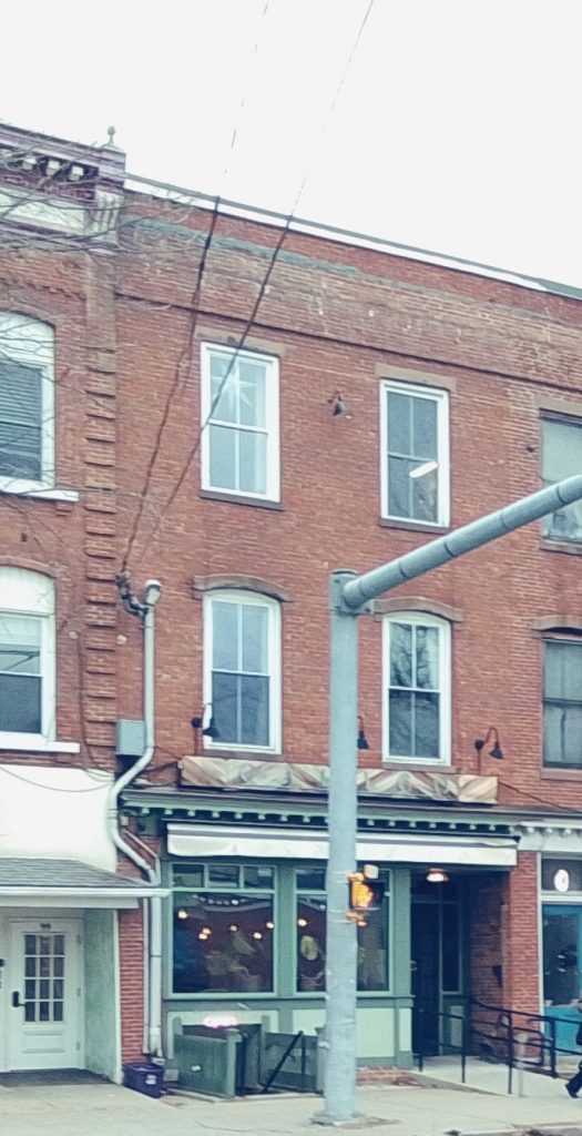 Masonic Building – Shop Row is from 1861. It is at 67 to 75 Main Street. Lyman Bartlett built this building. Thomas Pomeroy would buy it in 1865 and name it after himself Pomeroy Block. (Macris) Then it known as the Merrill Block and then the White Block.