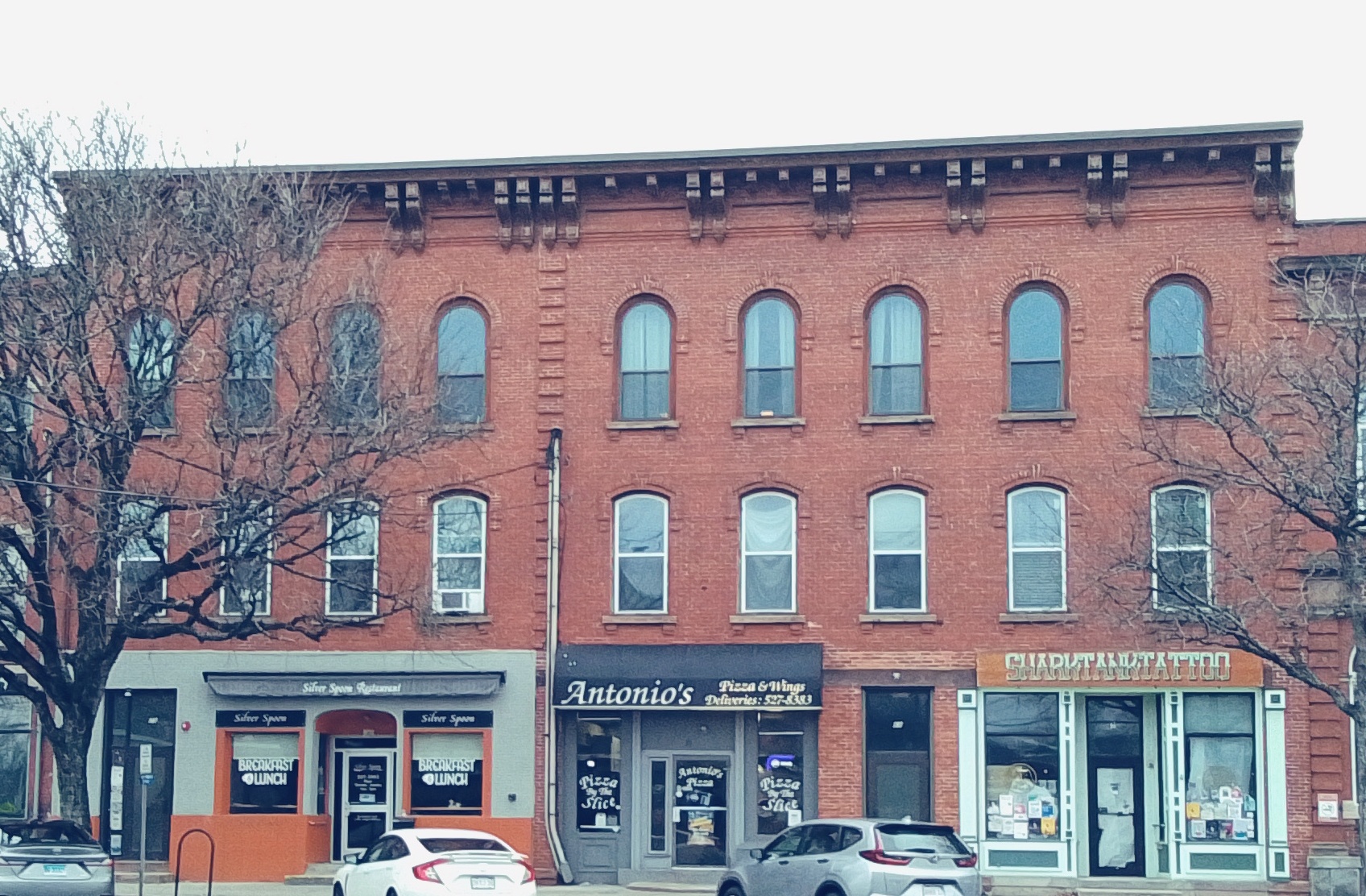 Knight’s Brick Block – Preston Block is the oldest part of these blocks at a birth year of 1849. The address is 83-87 Main Street. Lucius Preston a taylor who worked in this block would own the block from 1901 to 1920 and the building came to be known as the Preston. The structure was made at two floors and a gable but in 1893 was changed from that into a three floor one. Horatio Knight had this block made and was the first commercial building in town.