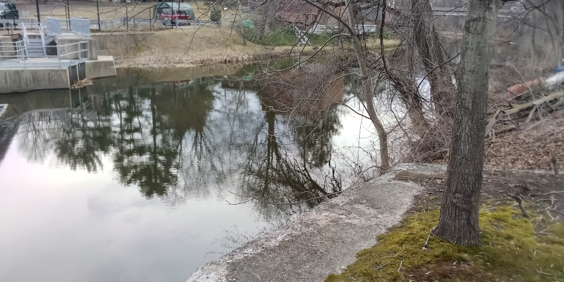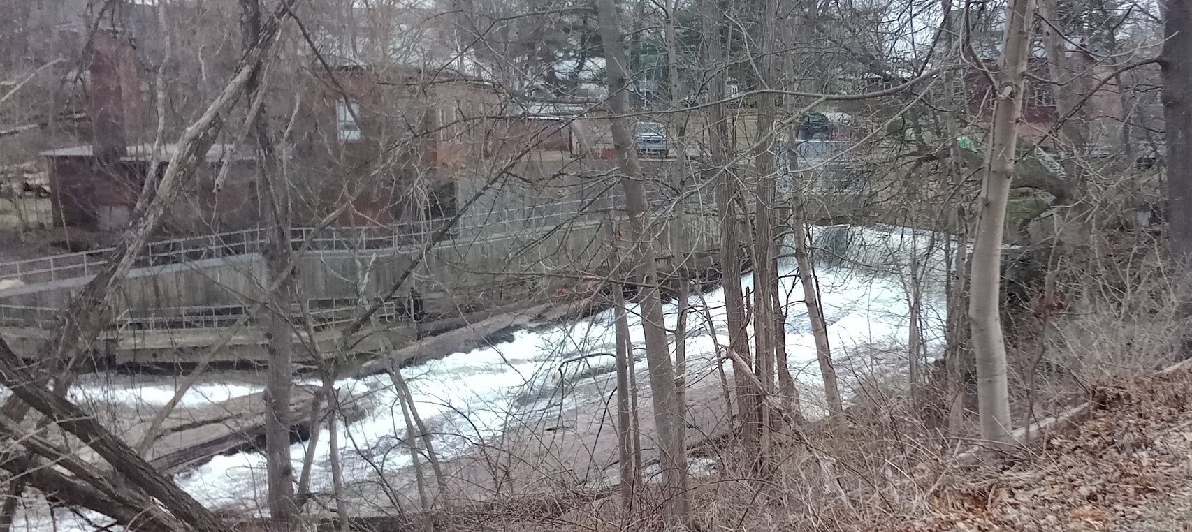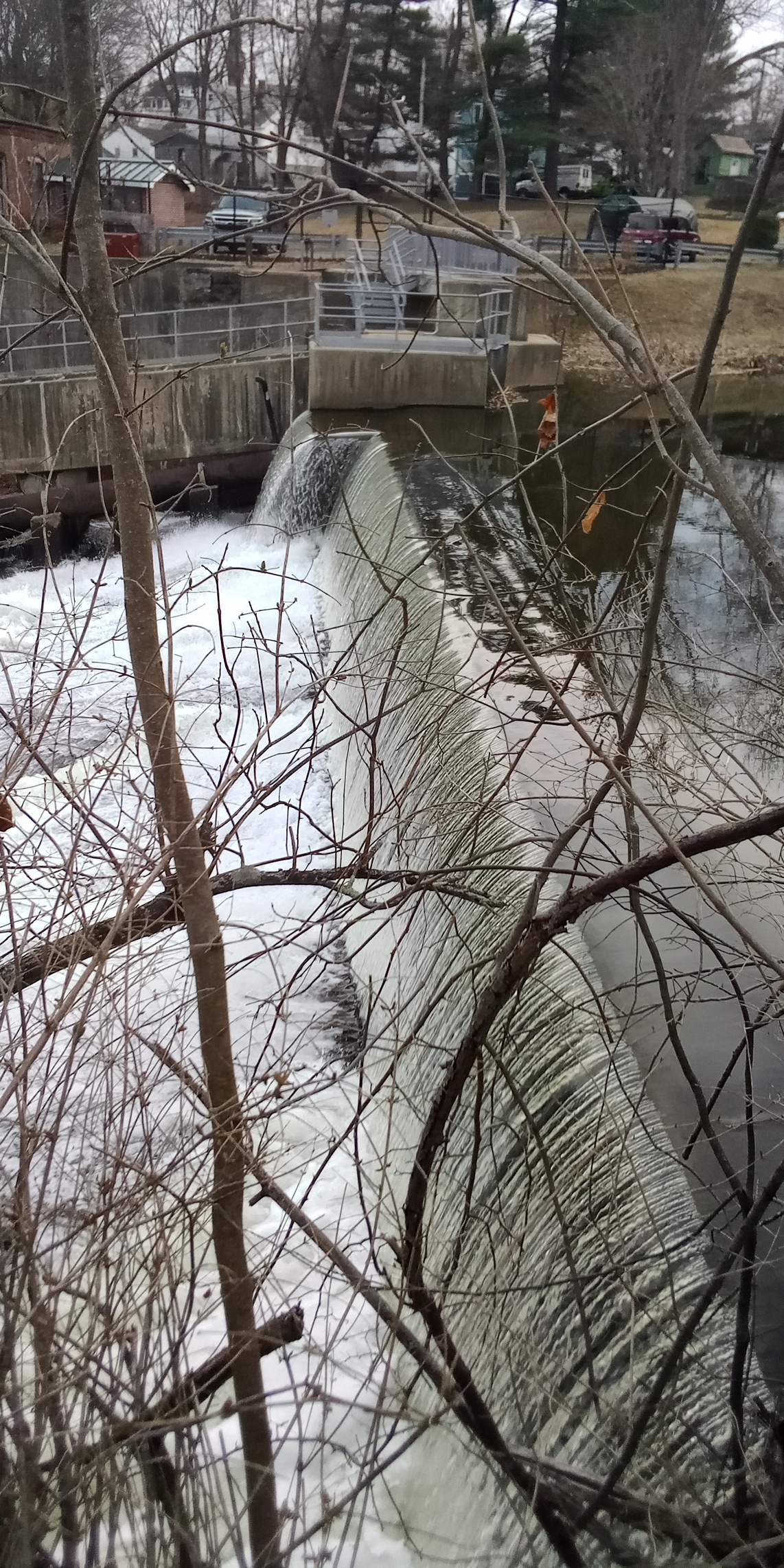 Easthampton Waterworks Dam is located near the crossing of Northampton Street with the Manhan River. Use Mill Street to get to the dam site.