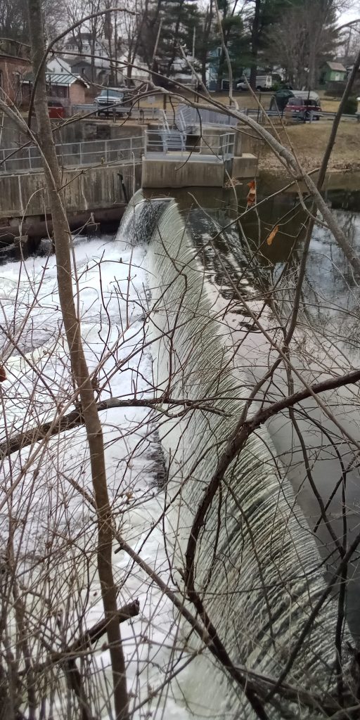 From 1866 to 1885 this dam was owned by Joel Bassett and the Mount Tom Thread Company. Easthampton had a hydroelectric generator on the dam until 1947.