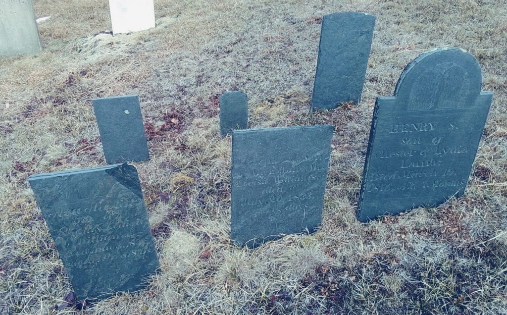 The Luther Henry Tomb Yard abuts the cemetery. The town took over the yard in 1954. Burials started there in 1820. The Luther Henry Tomb is from 1839. The west half of the cemetery is for the Luther Henry family and the east half for the Samuel Henry family.