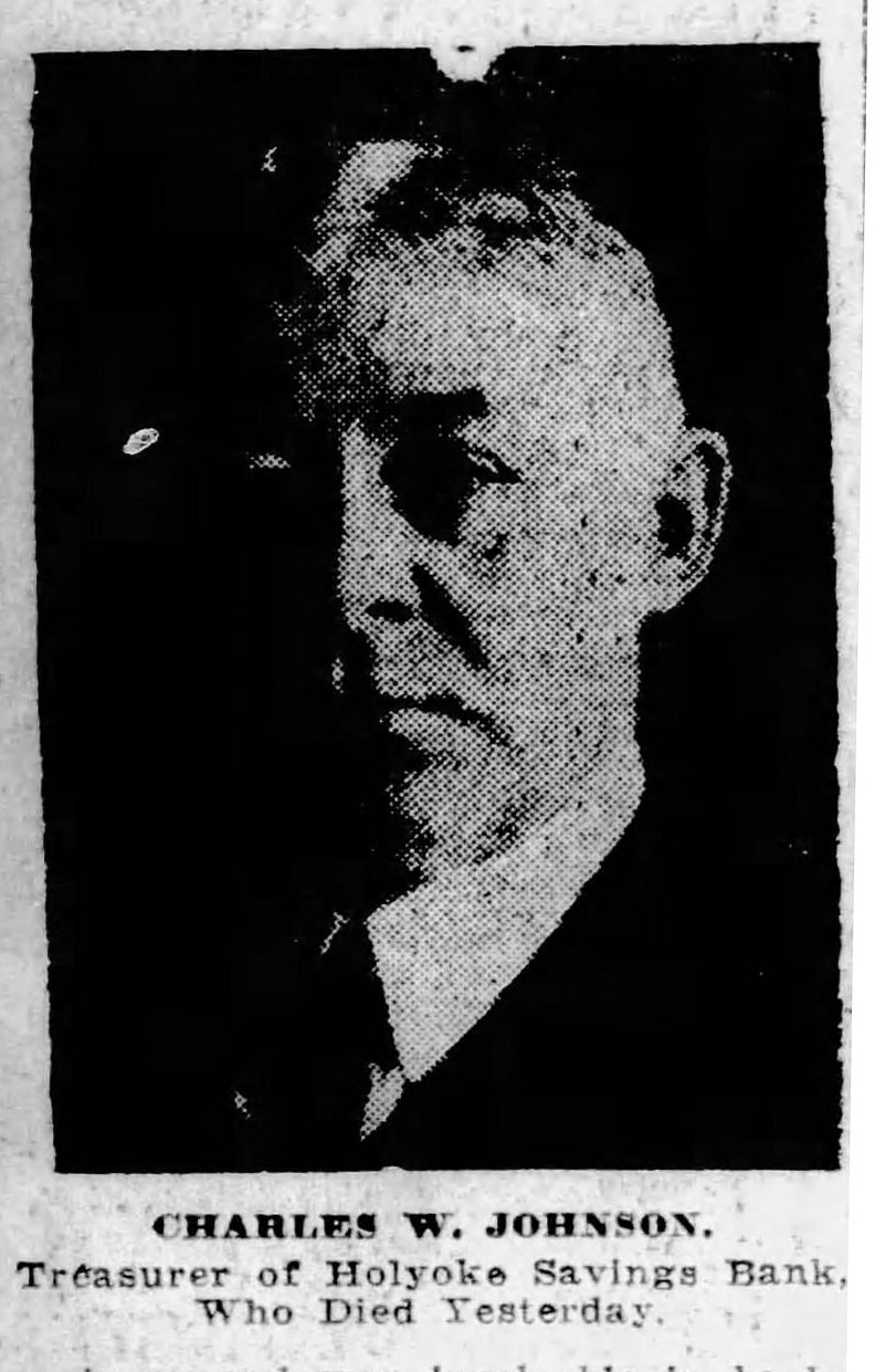 Charles W Johnson the son of Robert Johnson would take over the insurance company and the bank from his father. He was assistant treasurer and secretary during his father’s life. Charles had built a house for his new family on the land that his father gave him. That house like his father’s house is still there. They are so very close that one may call them twin houses. That house is at 1439 Northampton Street.