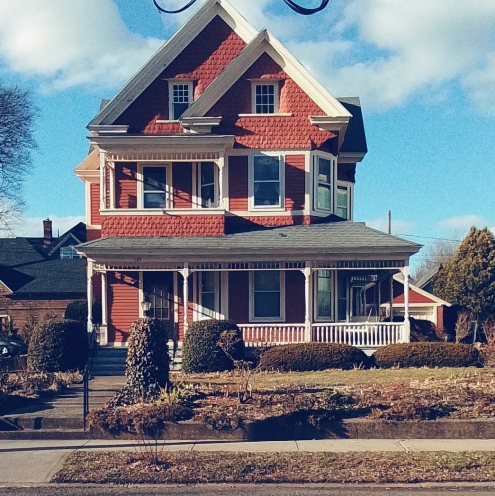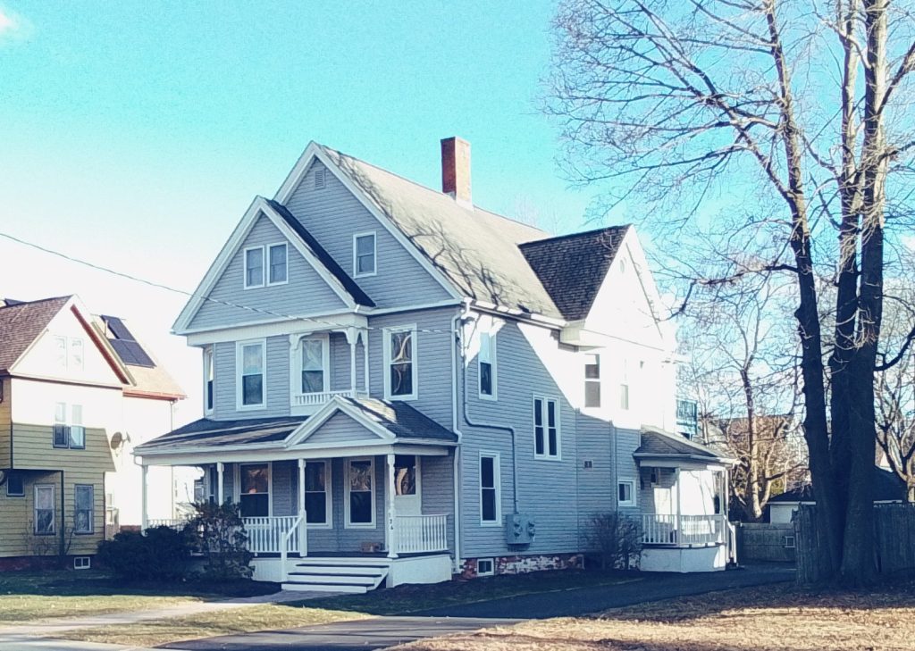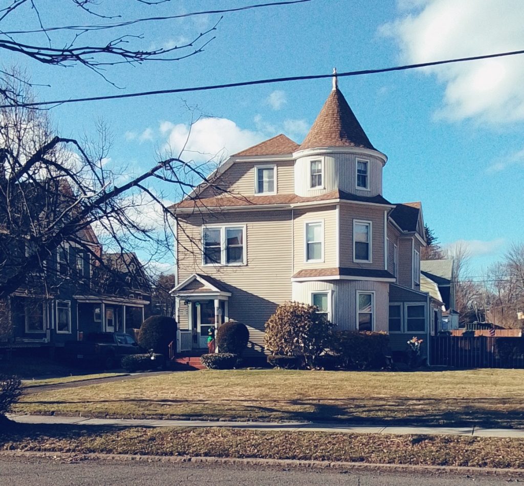 William B Whiting was at 127 Lincoln Street and is from 1894 – The Whiting family owned many enterprises in Holyoke and served the city in many ways. William B Whiting owned a coal business in the city and his son owned a large paper mill. The house is in a shingle style.