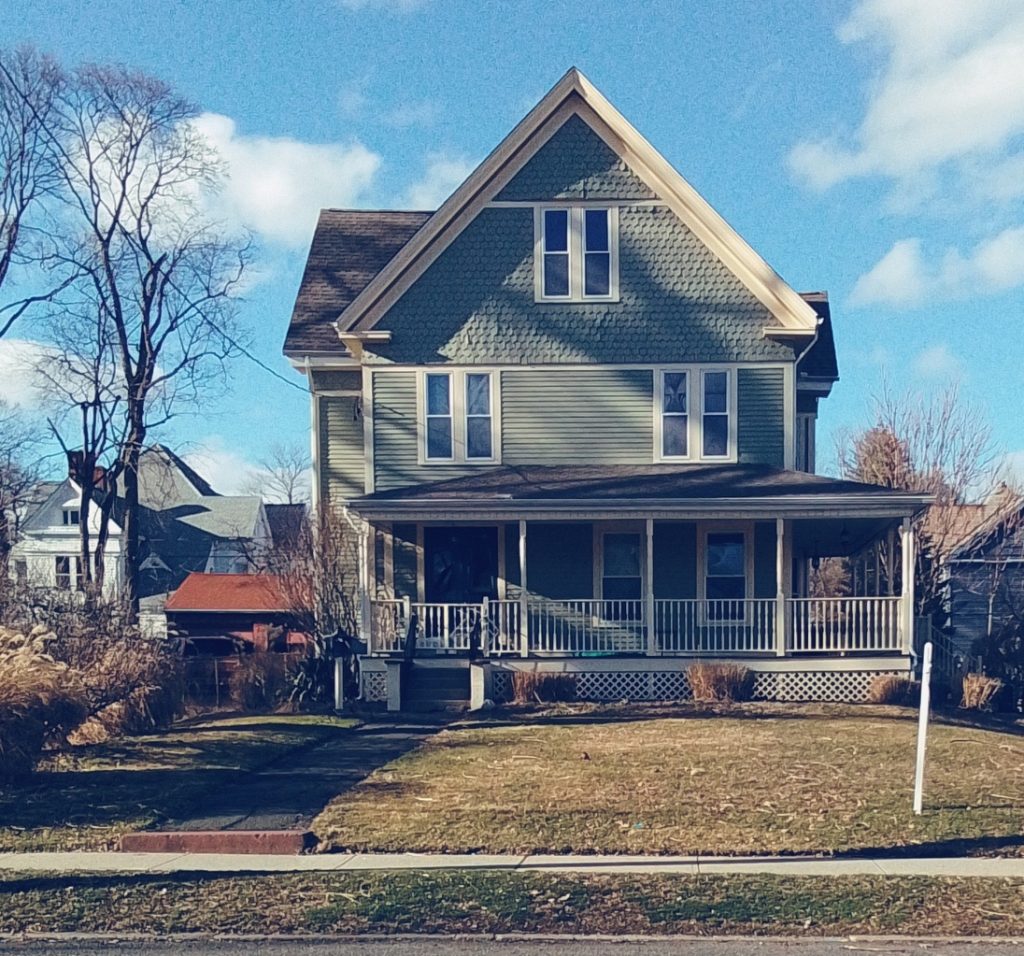 At the top of the street, the Johnson houses are side by side. Robert’s house is to the right and his son’s Charles’ house is to the left. They owned an insurance company on High Street. His house is my 5th installation of my series called A House in Holyoke through Time. HOUSE