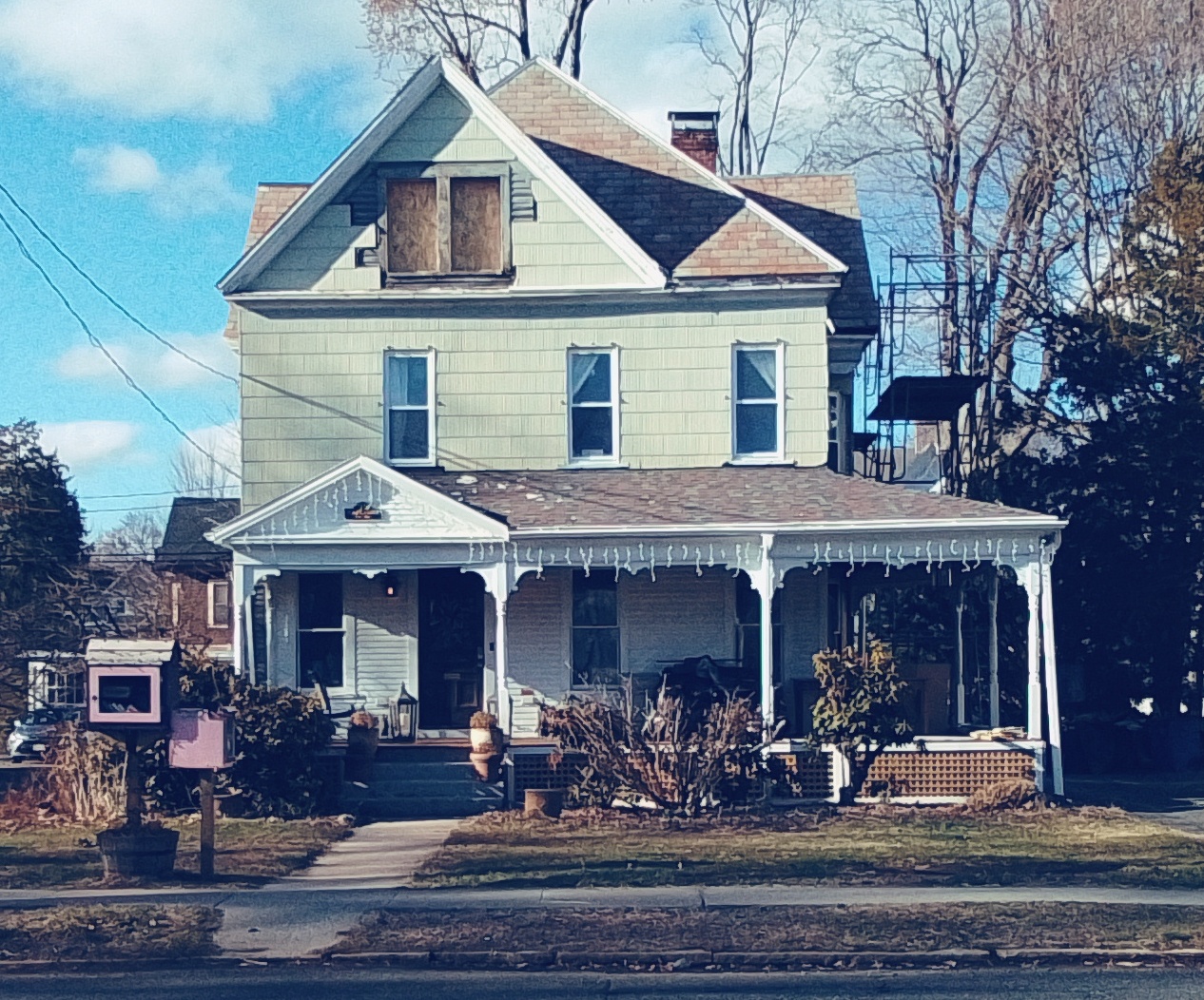 At the top of the street, the Johnson houses are side by side. Robert’s house is to the right and his son’s Charles’ house is to the left. They owned an insurance company on High Street. His house is my 5th installation of my series called A House in Holyoke through Time. HOUSE