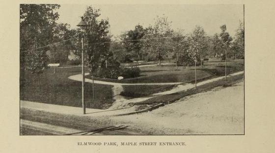 The first mention that I can find of Elmwood Park in the annual city registers is that of the year 1899. In that year, the edge of the park along Jackson Street was graded, a walk built, and a tree belt seeded. Before that from 1895 to 1899, it is called Dingle Park in the city annual register. They are both fine names – there were 5 dingles in Elmwood Park at its height but only one in its infancy. The 1894 Richards map also has the park but without a name. This is the earliest ever reference to the park. The Holyoke TT references the park in 1895 and then onward more often.