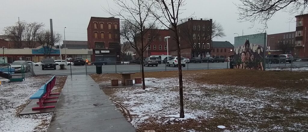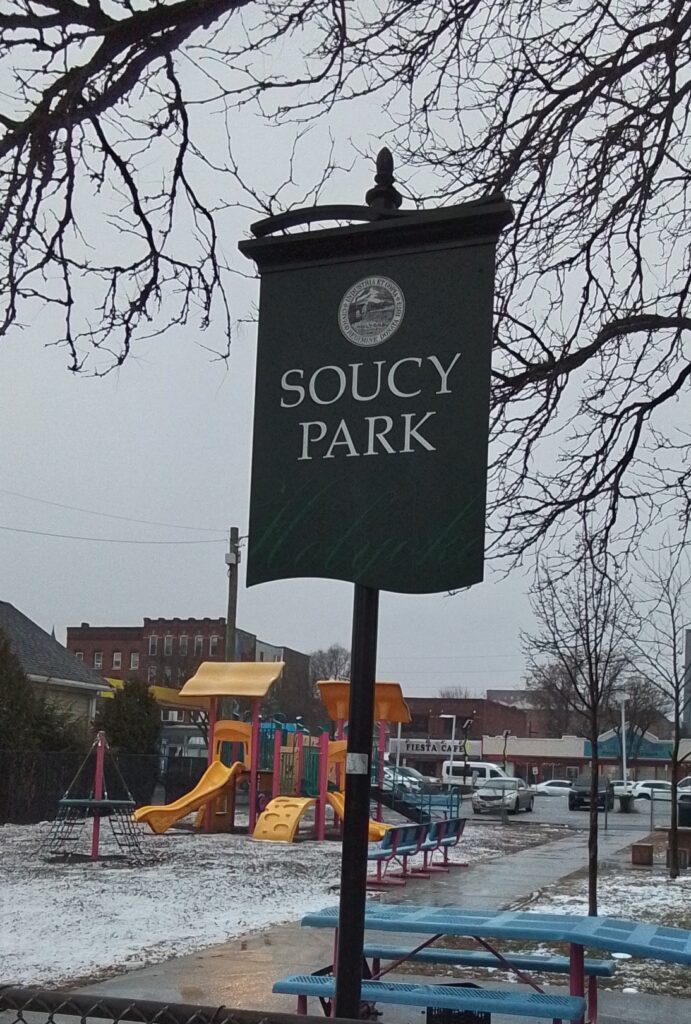 Soucy Park is named after Beatrice Plouffe Soucy who died in a fire at this spot at 47 Park Street on March 6 1973. FINDAGRAVE On July 20 1977 the park was dedicated. In 1998 the park was renovated.