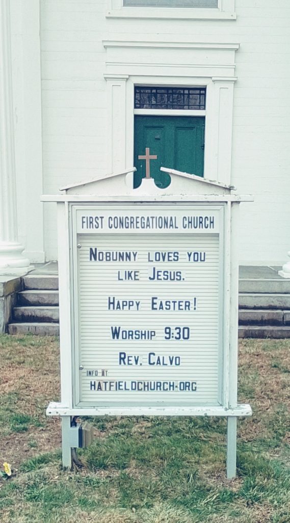 First Congregational Church of Hatfield is at 41 Main Street. The church is from 1849 and is the 4th edition of the church. It is in the Greek Revival style. The clock is from 1891. The history of the church at external LINK and the web site for the church today is at: