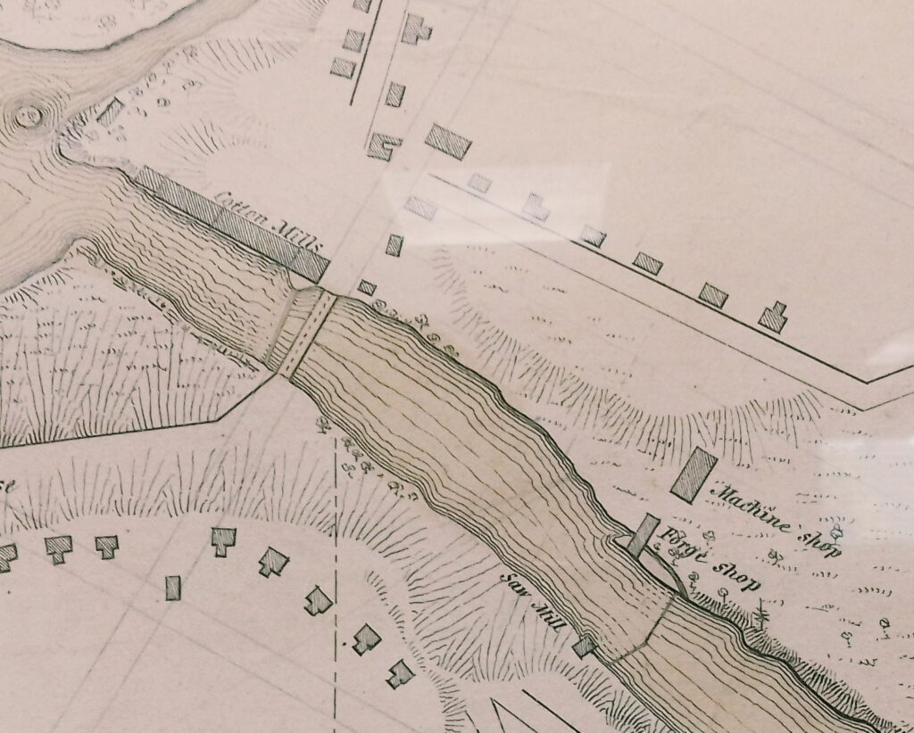 The Ludlow Mills’ very early buildings had to use canal power in order to generate hydromechanical energy. This canal took water from the Chicopee River to power some mills. The mills would have been located in between the canal and the river. This canal was built in the year 1821 which is a very early use of canal power in this style. The Lowell Mills started with this style also in 1821.