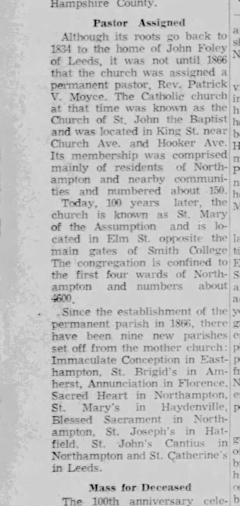 The Saint Mary’s Church that existed now was completed in 1881 and the rectory in 1888. The older church was made in 1844 on King Street. It was a mission church of the Saint Matthew Church in Springfield/Chicopee and then the Holy Name Church in Chicopee. The cemetery of the church is at LINK.