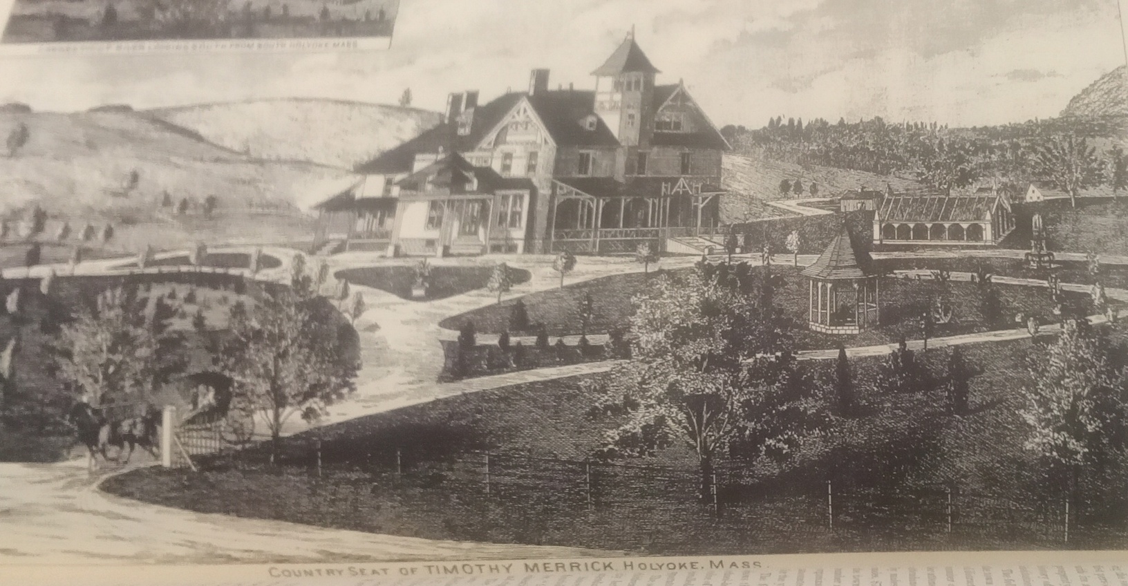 Timothy Merrick was the spooled thread king of the United States. He came to Holyoke in 1865 from Mansfield Connecticut. He built five mills whose total capacity was one million miles of thread. In 1872 he bought land at the northwest corner of Northampton Street and Westfield Road. His grand mansion and stable befit a very rich family. He died in 1888 and his family lived in the mansion until 1910. At that point the novitiates of the Carmel Sisters of Providence moved into the Merrick mansion (1910). Novitiates are the new recruits to an order that have not taken their religious vows yet. In 1931 the Blessed Sacrament rectory was put into the mansion and the ample land was the pastor’s yard. This was the start of the parish moving nearly all of its operation into this area.