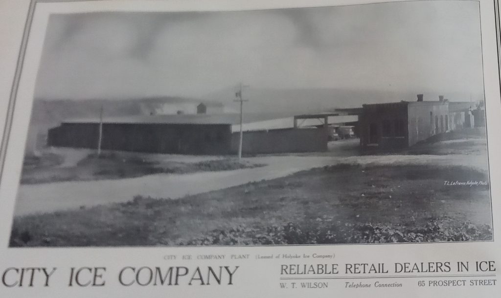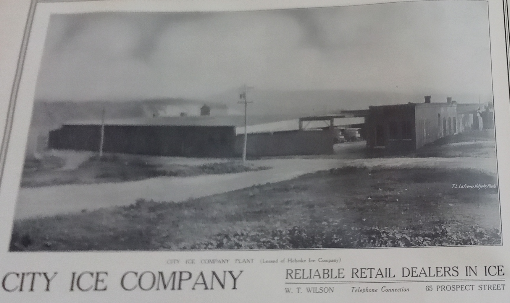 The Holyoke Ice Company started at this location in about 1900. They harvested ice from Ashley Reservoir and from Log Cove from 1900 to 1940. Refrigeration changed the company since people needed less ice but the company still existed until 1990.