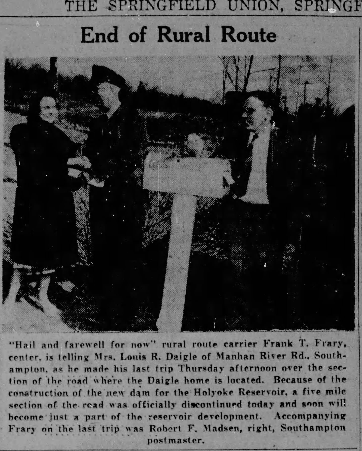 The Tighe-Carmody Reservoir was built in Southampton directly over the Manhan Reservoir and enlarged it greatly. Its dam is 800 feet long and 120 feet high.