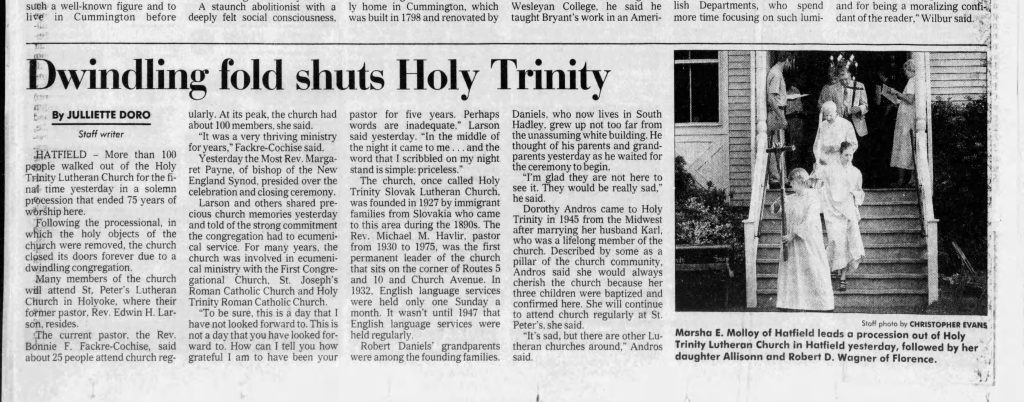 West Hatfield Congregational Chapel was at 11 Church Avenue. It is now at 9 Church Avenue. It is in the stick style Victorian from the 1890s. It would later become the Holy Trinity Lutheran Church.
