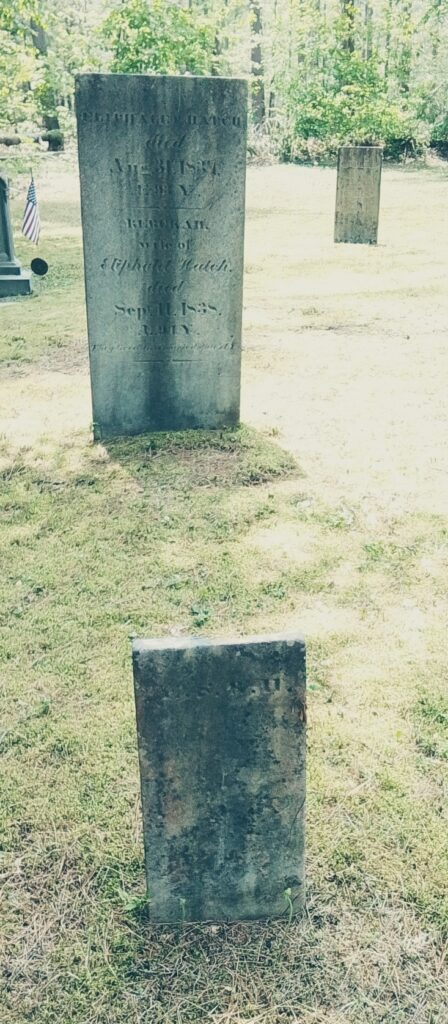 Eliphalet Hatch and his wife share a footstone. The headstone once faced to the west and the footstone does face to the east correctly so.