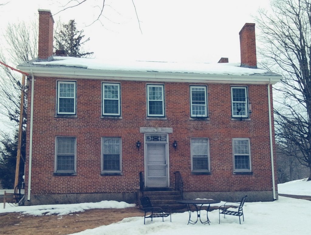 The chapel was donated in 1897 by Fidelia Dickinson. She is in the West Cemetery of Amherst – FINDAGRAVE That is the year she died so most likely it was donated via probate. Her husband is Joseph Dickinson Jr and her father in law is Joseph Dickinson Sr. When this Joseph Sr married Sarah Hunt in about 1795 they must have had the house built.